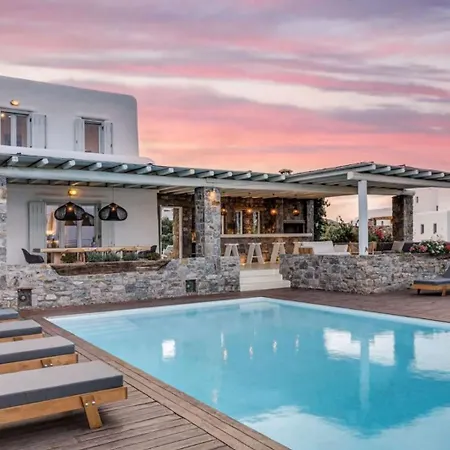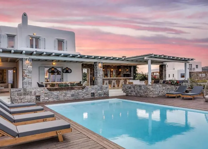 La Villa Super Paradise Mikonos Mykonos Town si trova a 150 m da Super Rockies Resort e dispone di una piscina privata e di una terrazza per un soggiorno rilassante.